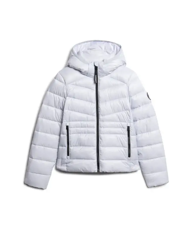 Luxury and practicality complement each other perfectly with this jacket. Clear Superdry DNA runs through the design, which includes a cosy plush lining and large pockets, so you can easily feel and look your best in the supreme comfort and quality of the Hooded Fuji Quilted Padded Jacket. Slim fit - designed to fit closer to the body for a more tailored look UK10 shoulder to hem: 62cm Durable water repellency - This fabric has been coated with an advanced water-resistant finish Lightly padded Plush lining in the hood and body Padded inner collar Zip fastening Two large pockets with zip fastenings Elasticated cuffs Bungee cord hem adjuster Sleeve logo badge Embroidered back logo