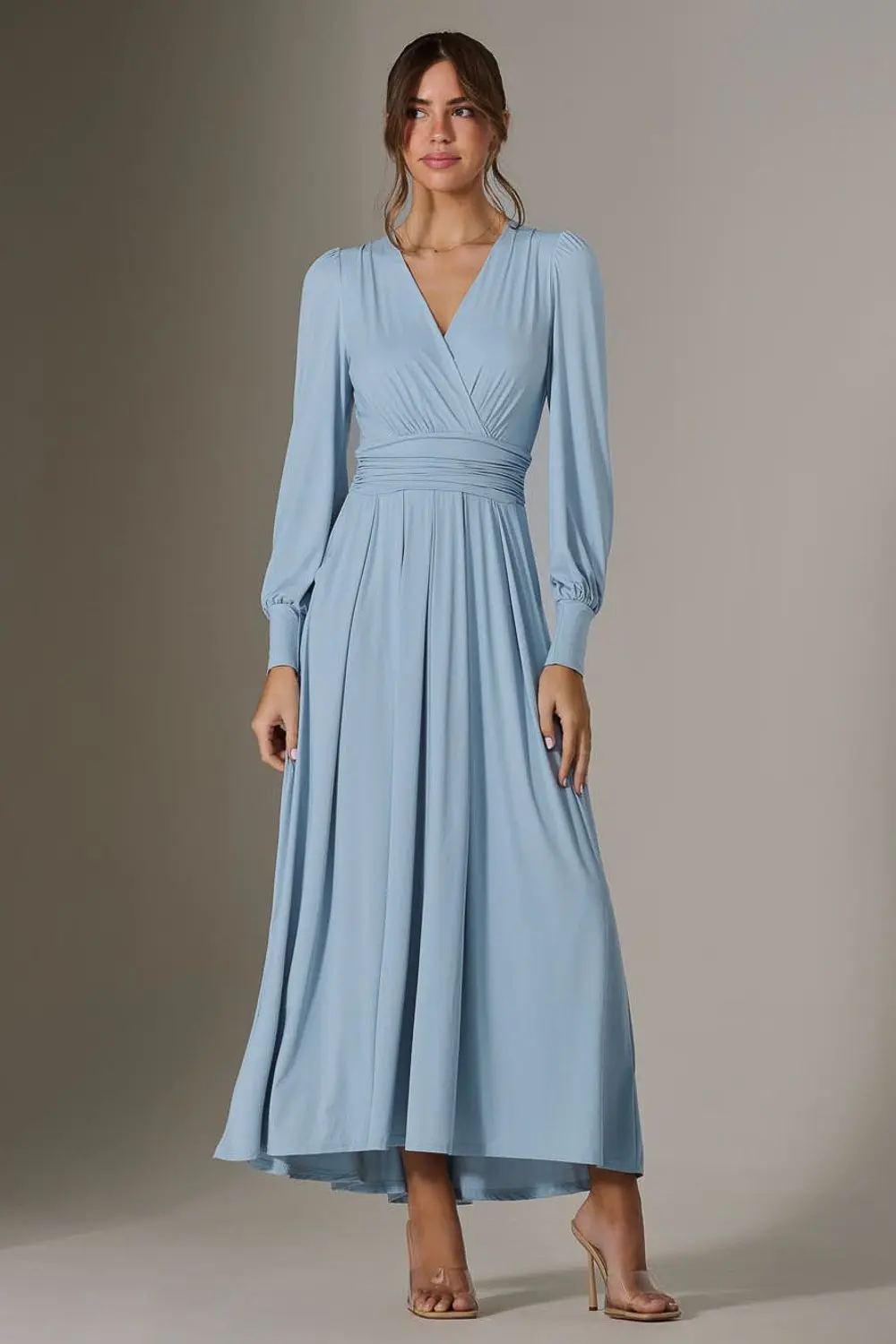 Jolie Moi Women's Long Sleeve Soft Silky Jersey Maxi Dress in Light Blue