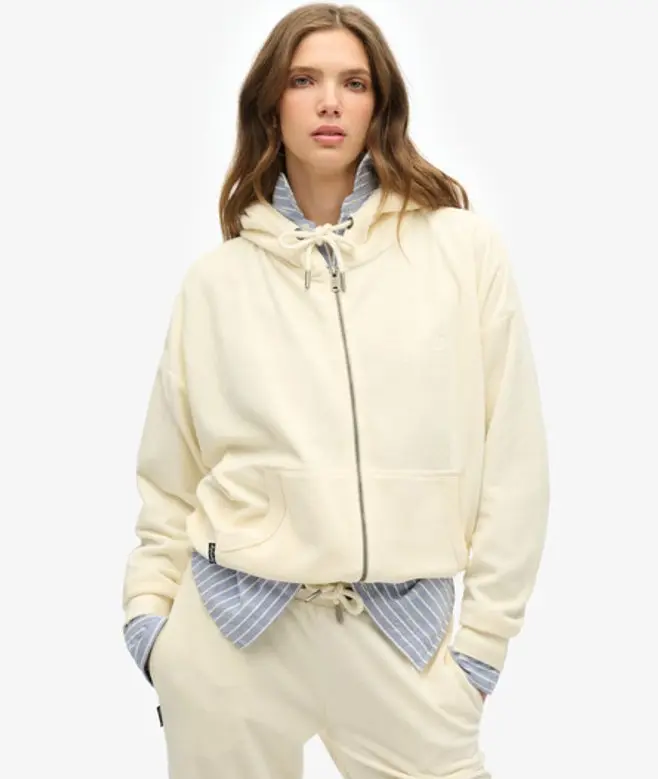 Superdry Women's Velour Zip Hoodie White / Desert Bone Off White -