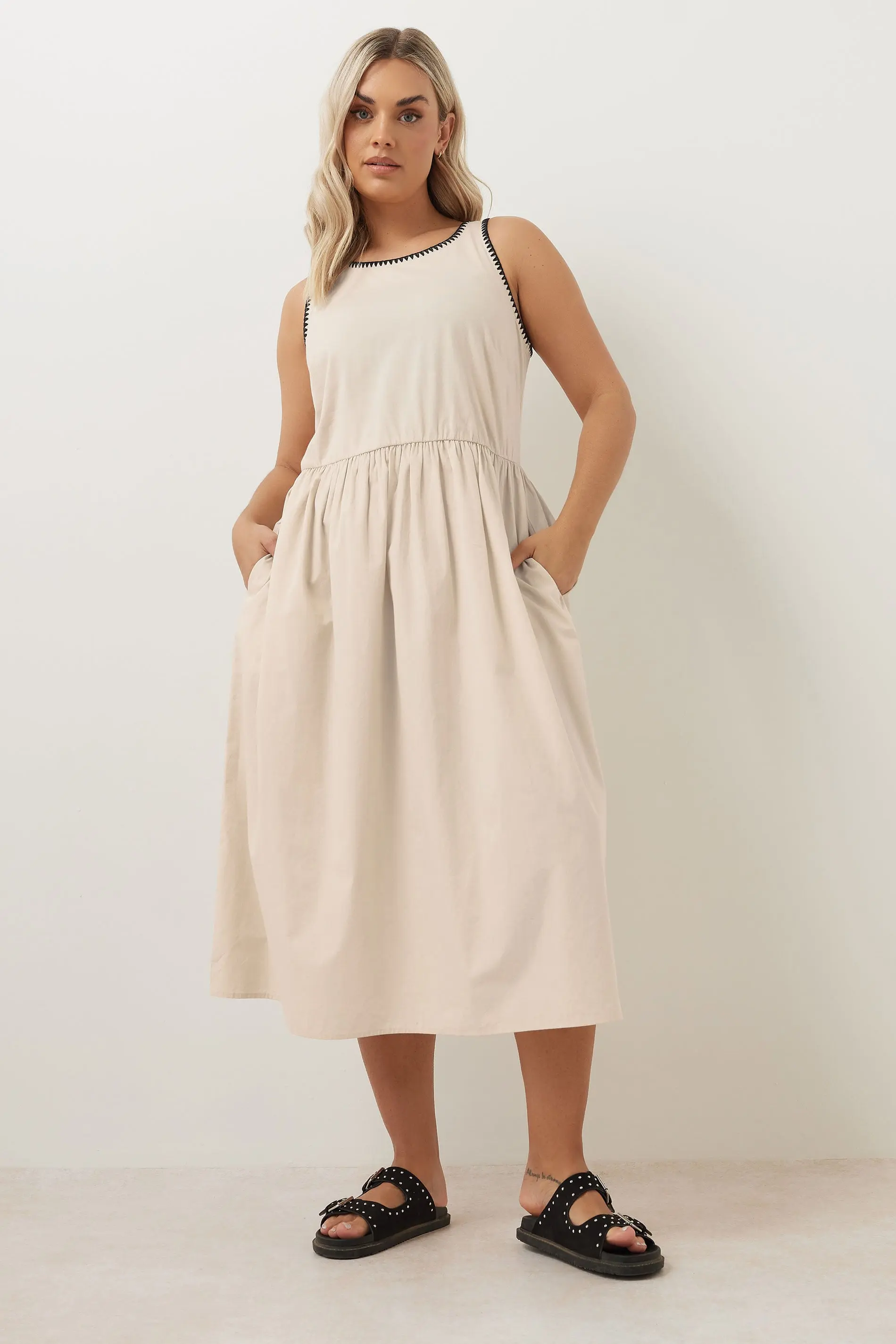 Yours Plus Size Natural Brown Contrast Blanket Stitch Midi Dress Size 18