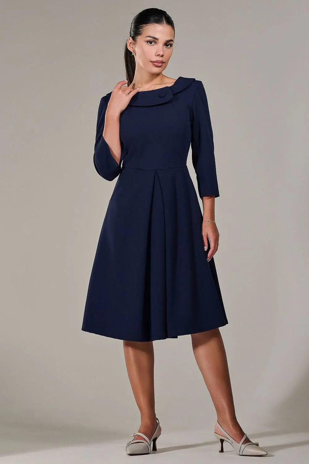 Jolie Moi Women's Petite Button Collar Dress in Navy