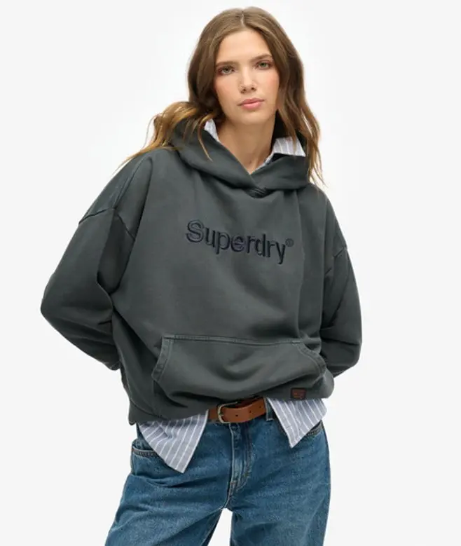Superdry Women's Embroidered Core Logo Relaxed Hoodie Dark Grey / Ebony -