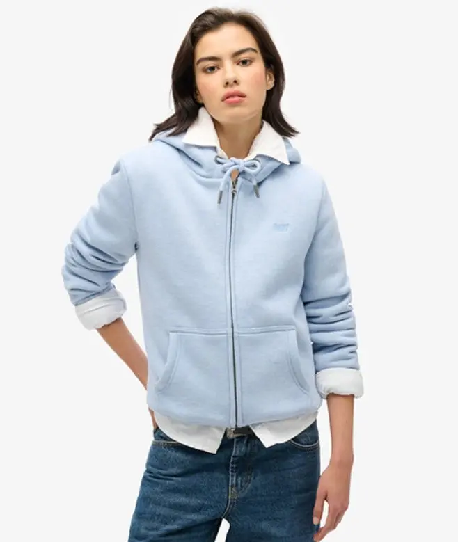 Superdry Women's Essential Borg Lined Zip Hoodie Light Blue / Blue Fog Marl -