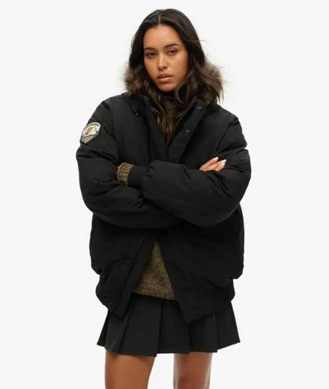 Superdry Women's Classic Oversized Everest Faux Fur Bomber Jacket, Black,