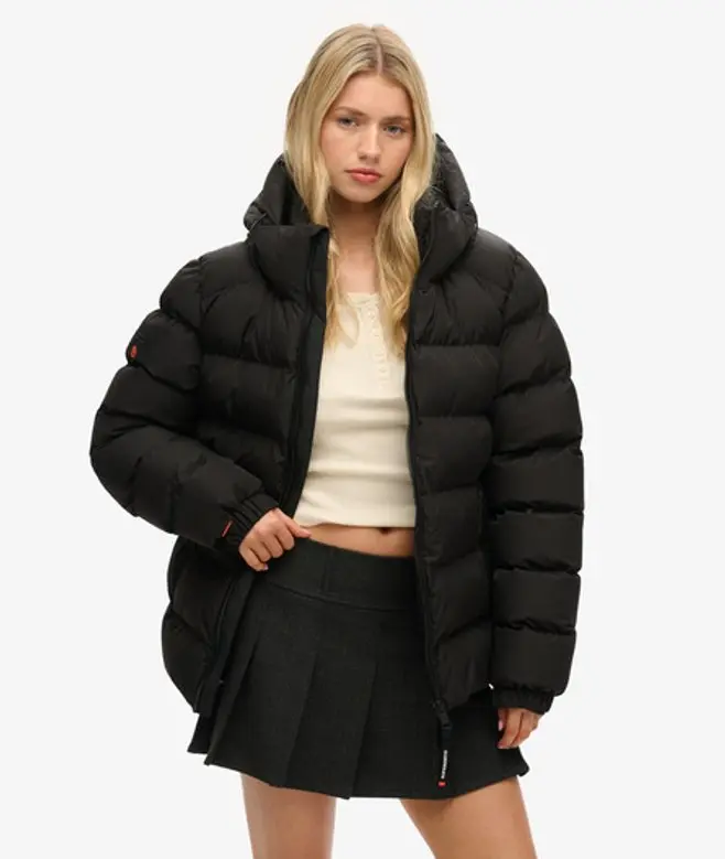 Superdry Women's Oversized Hooded Sports Puffer Jacket Black -
