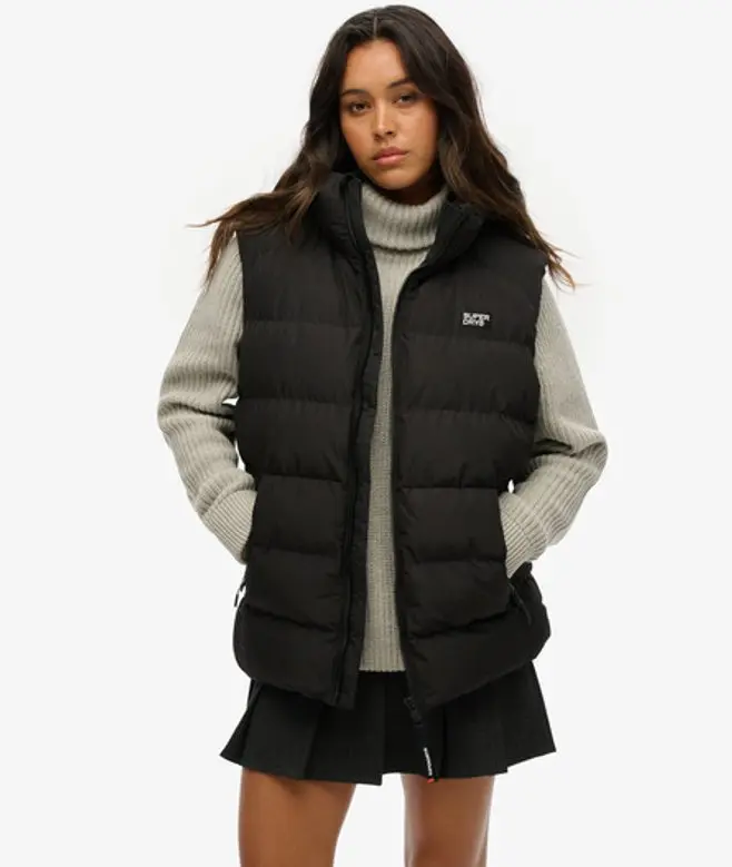 Superdry Women's Oversized Sports Puffer Gilet Black -