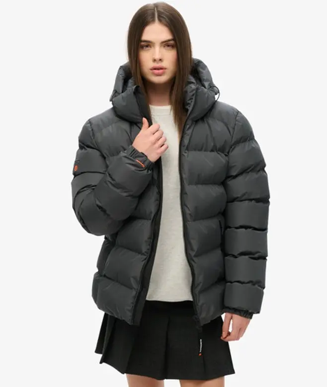 Superdry Women's Oversized Hooded Sports Puffer Jacket Dark Grey / Ebony -