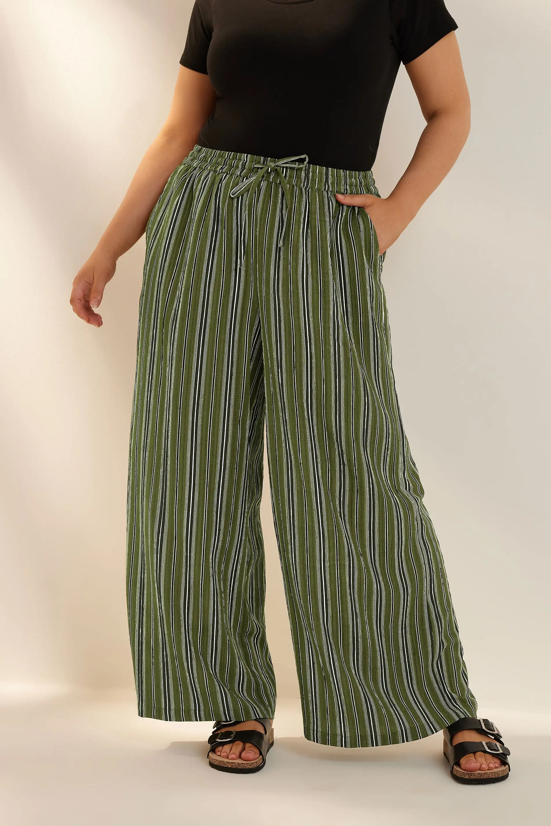Yours Plus Size Green Stripe Textured Wide Leg Trousers Size 28