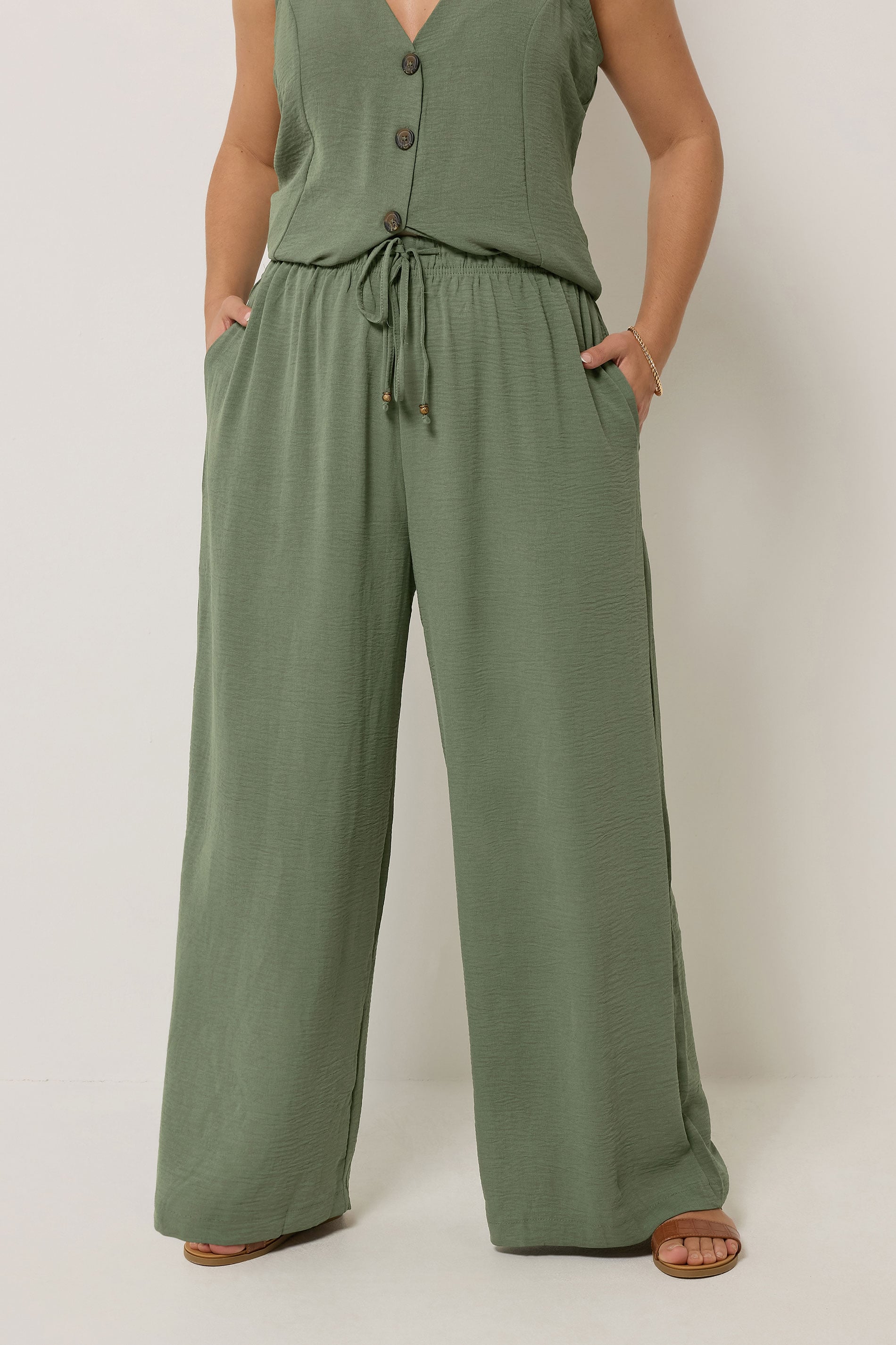 Yours Plus Size Khaki Green Twill Wide Leg Trousers Size 34-36