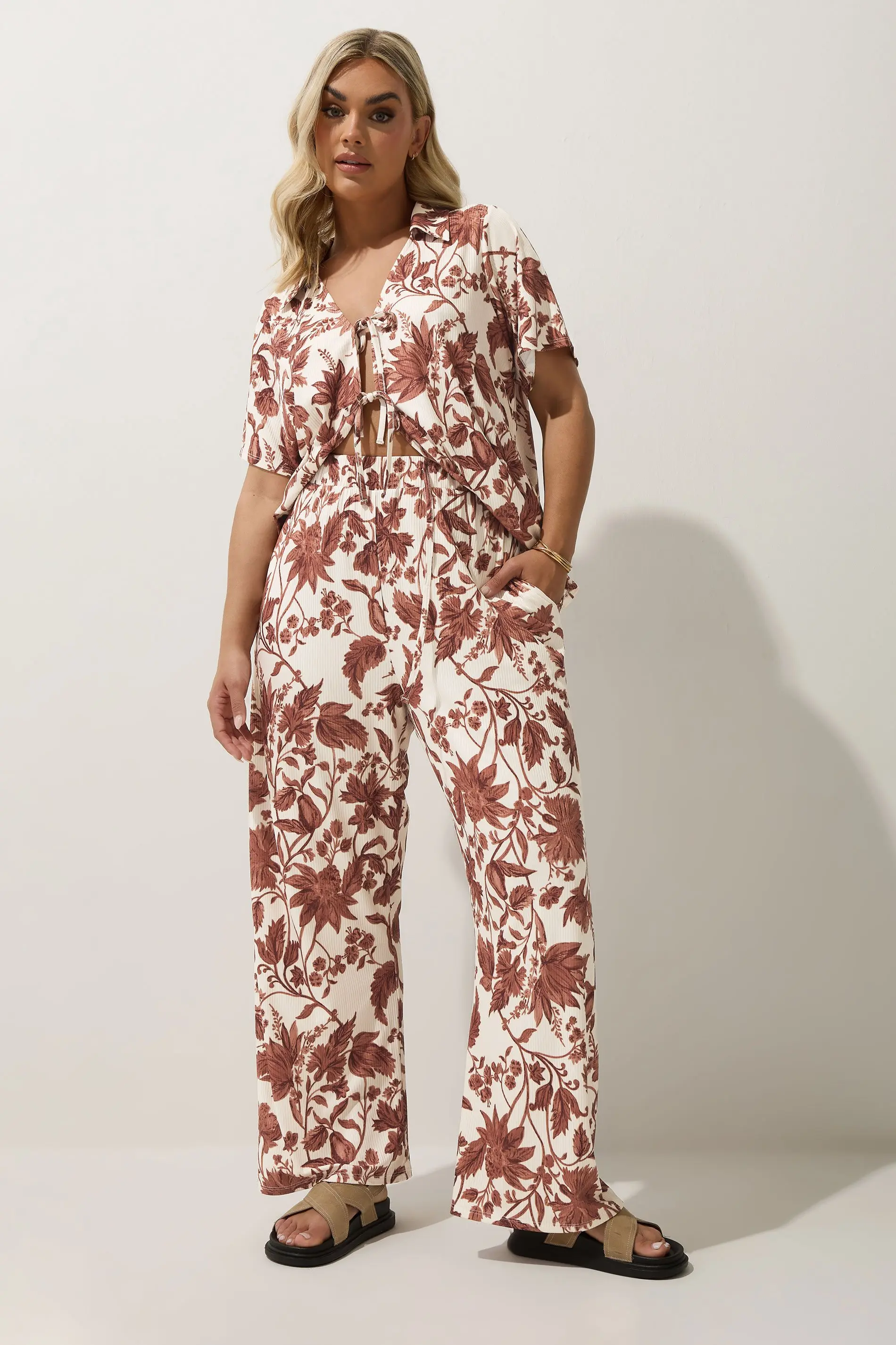 Welcome a must-have pair of trousers into your summer wardrobe with this new-in wide leg style from Limited Collection! Made from a ribbed jersey fabric, they feature a floral print design, an elasticated waistband, and two side pockets. Pair with the matching shirt for the perfect warmer weather co-ord! A summer staple!