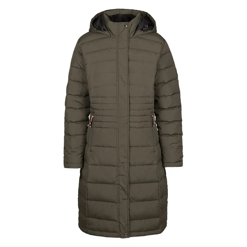 Outer Materials: 100% Polyester. Lining Material: 100% Polyester. Filling Material: 50% Down, 50% Feather. Lining: Furry Fleece. Fabric: Woven. Design: Logo. Fabric Technology: High Warmth, Powerfill 400. Badge. Neckline: Hooded. Sleeve-Type: Long-Sleeved. Cuff: Stud. Length: Long. Pockets: 2 Zip Pockets. Fastening: Full Zip, Stormflap, Stud. XXS: 31 in. XS: 32 in. S: 34 in. M: 36 in. L: 38 in. XL: 40 in. XXL: 42 in. 3XL: 44 in.