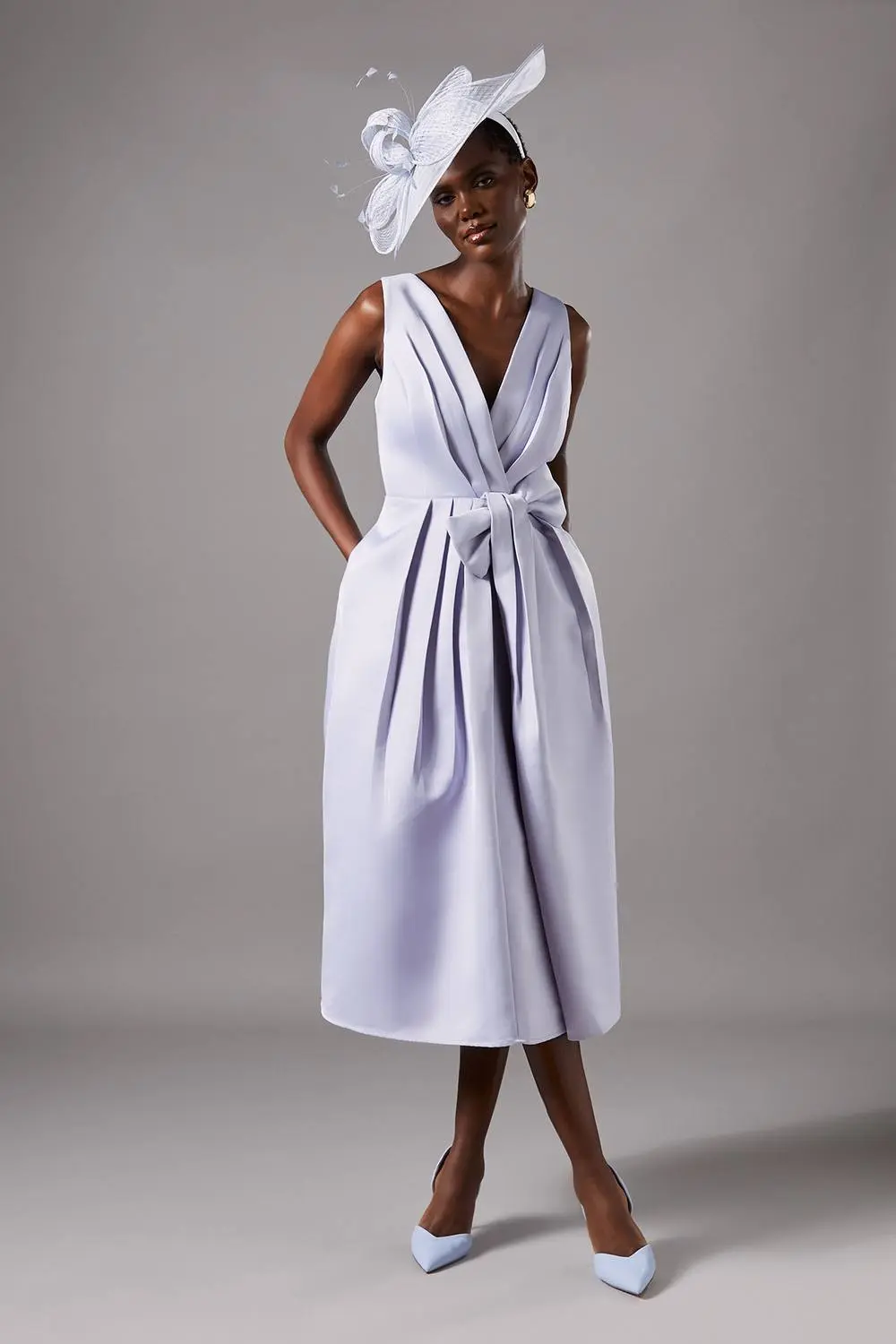 Coast Women's V Neck Bow Detail Midi Dress in Blue
