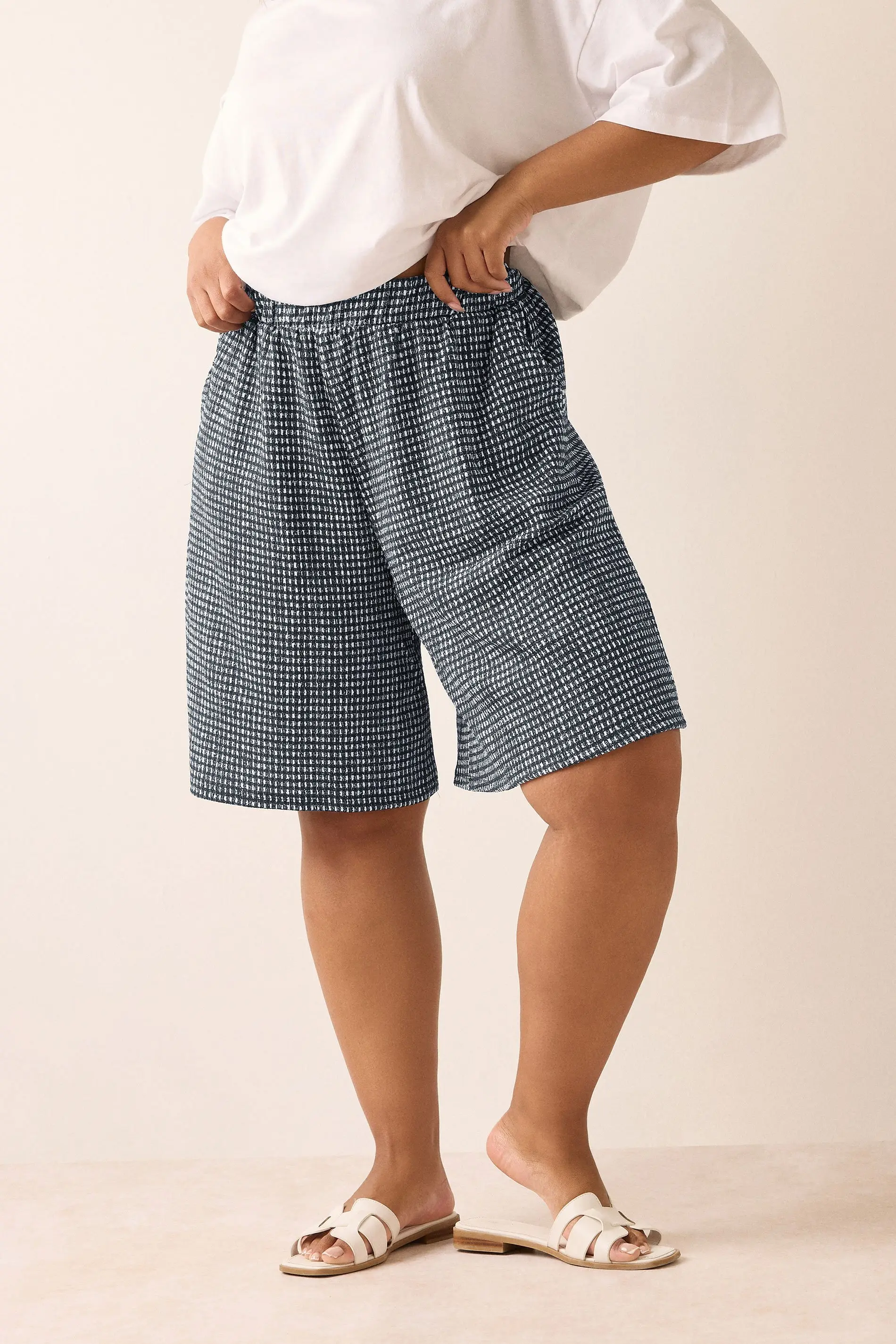 Yours Plus Size Black Gingham Crinkle Shorts Size 34-36