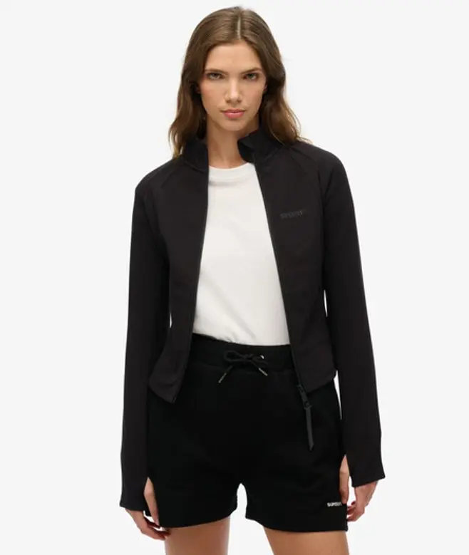 Relaxed fit - the classic Superdry fit. Not too slim, not too loose, just right. Go for your normal size Zip-through and long sleeves with thumbholes Two external zip pockets and two internal pockets Signature rubber text on the chest and back neckline A stylish twist on the classic track top, our Active Tech Fitted Track Top is sure to elevate any sporty look. Designed with thumbholes and zip-fastened pockets, it's practical and perfect for whatever active plans, whether you need a light layer for a cold-day jog or a long walk, you'll be reaching for it all season long.