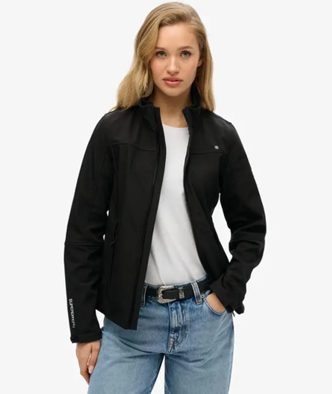 Superdry Women's Slim Fit Softshell Trekker Jacket, Black,
