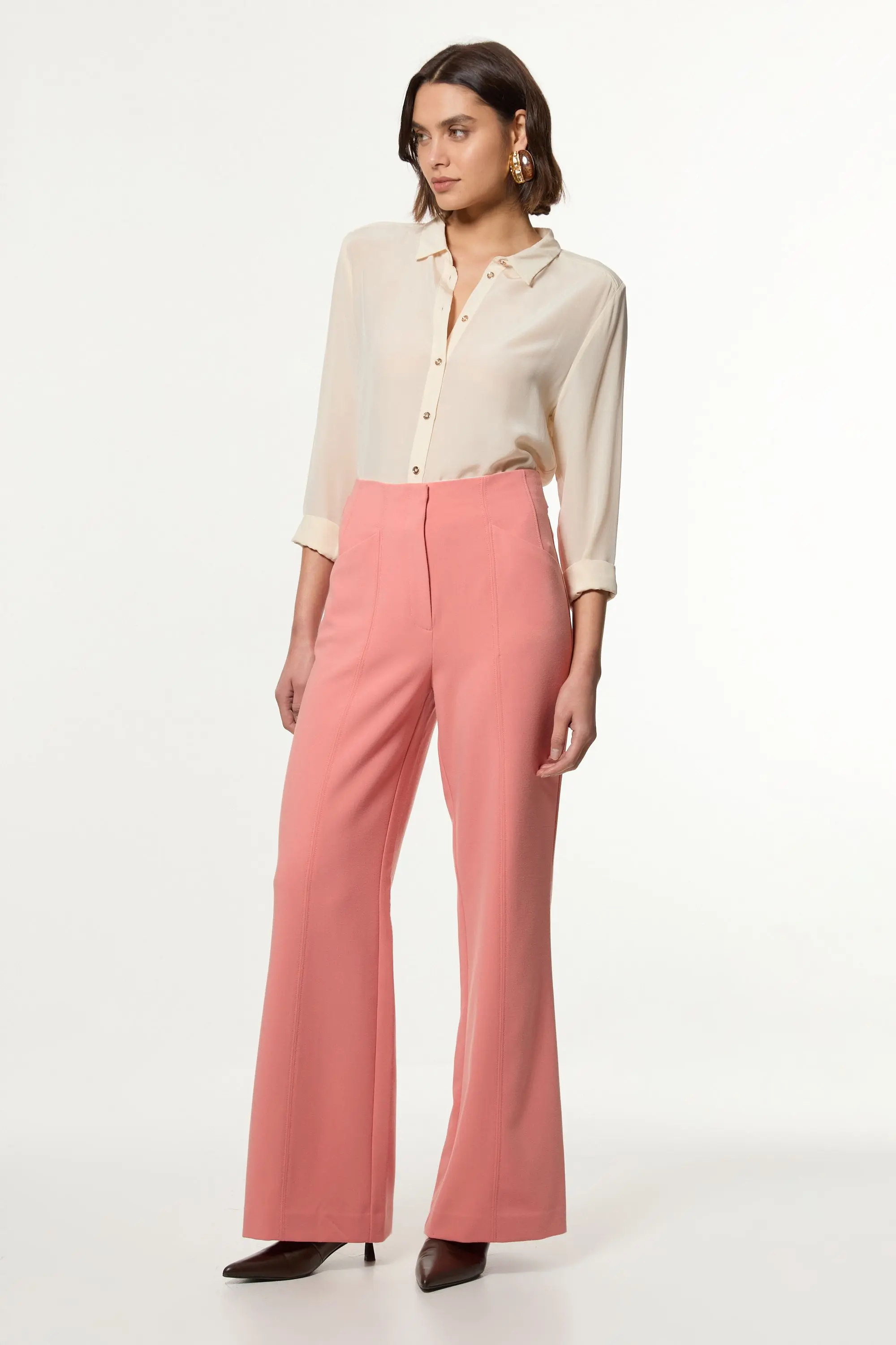 Compact Stretch Tailored Seam Detail Wide Leg Trouser - Pink