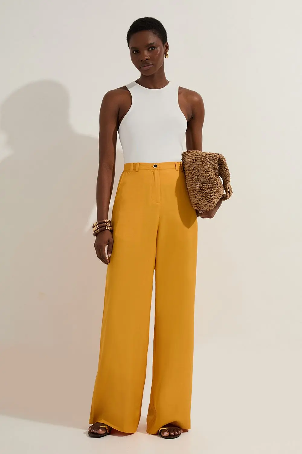 Premium Viscose Linen Woven Straight Leg Trouser - Mango
