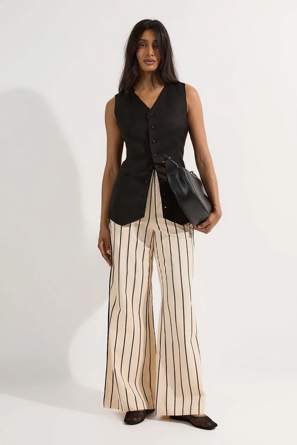 Cotton Belted Woven Trouser - Stripe - These cotton woven trousers from Karen Millen combine timeless style with contemporary design. The wide leg cut creates a dramatic silhouette that moves beautifully with every step, while the vertical stripes draw the eye downward for a lengthening effect. Style with the matching belt to define your waist, or swap for a contrasting option to create your own look. For casual daywear, pair with a fitted black vest top as shown, or try with a crisp white shirt for a smart-casual office ensemble. These versatile trousers transition effortlessly from family gatherings to weekend brunches; simply switch between flat pumps and low block heels depending on the occasion. The natural cotton fabric ensures all-day comfort, making these trousers an essential addition to your daywear collection. Crafted from pure cotton for breathable comfort throughout the day Wide leg silhouette creates a flowing, relaxed shape that flatters all figures Distinctive vertical stripe pattern adds visual interest and elongates the silhouette Coordinating belt cinches the waist for a customisable fit Practical side pockets offer convenient storage for small essentials