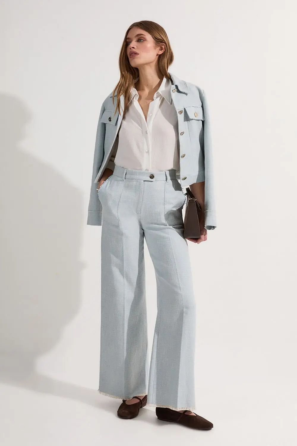 Petite Spring Tweed Tailored Straight Leg Trousers - Pale Blue