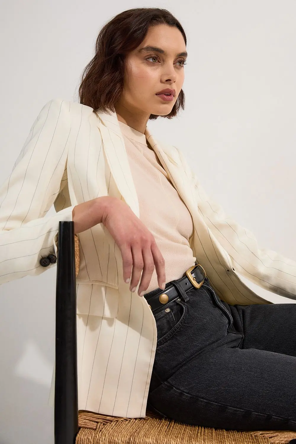 Premium Linen Viscose Pinstripe Tailored Jacket - Stripe