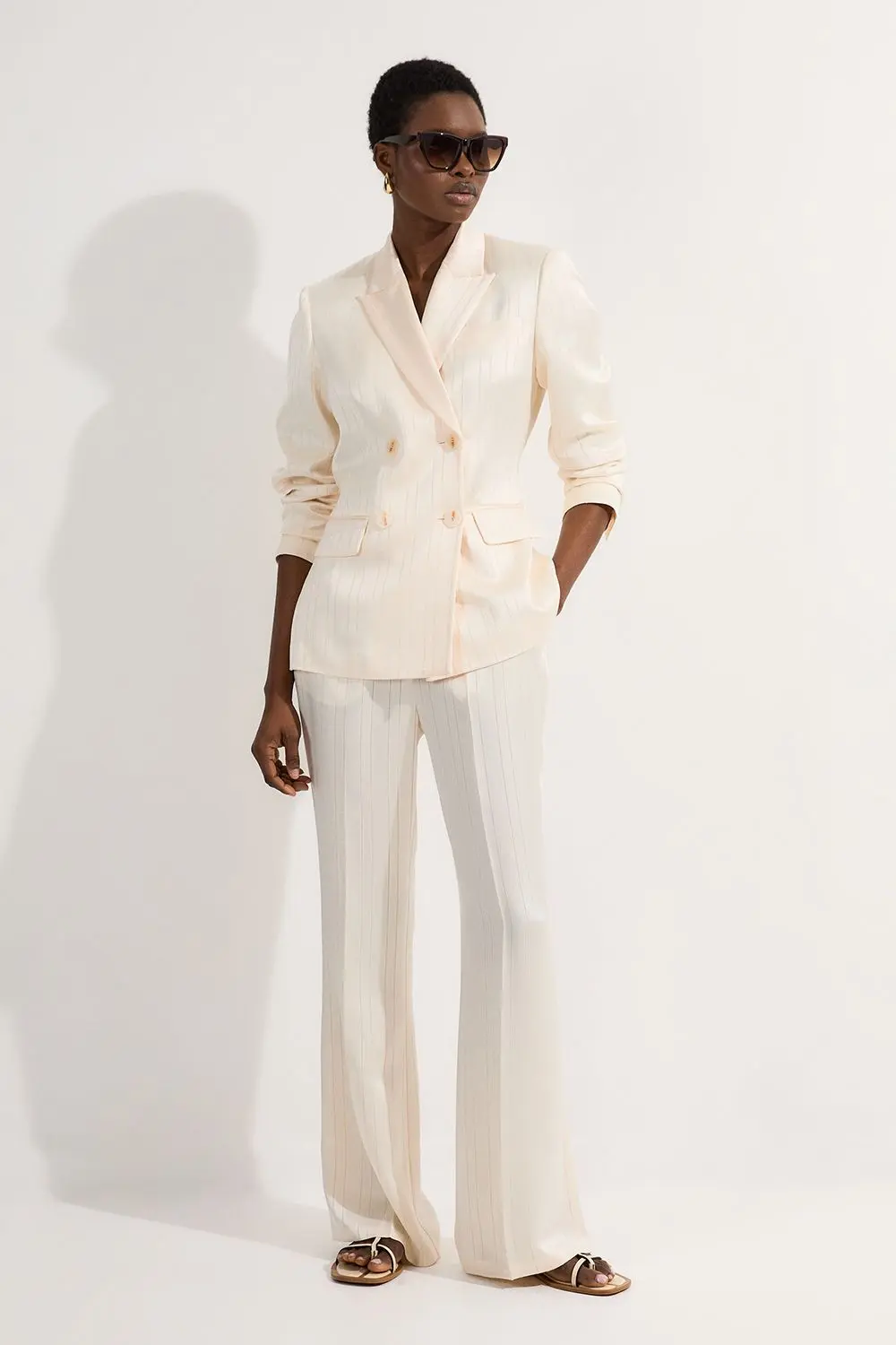 Petite Premium Satin Pinstripe Tailored Straight Leg Trouser - Ivory