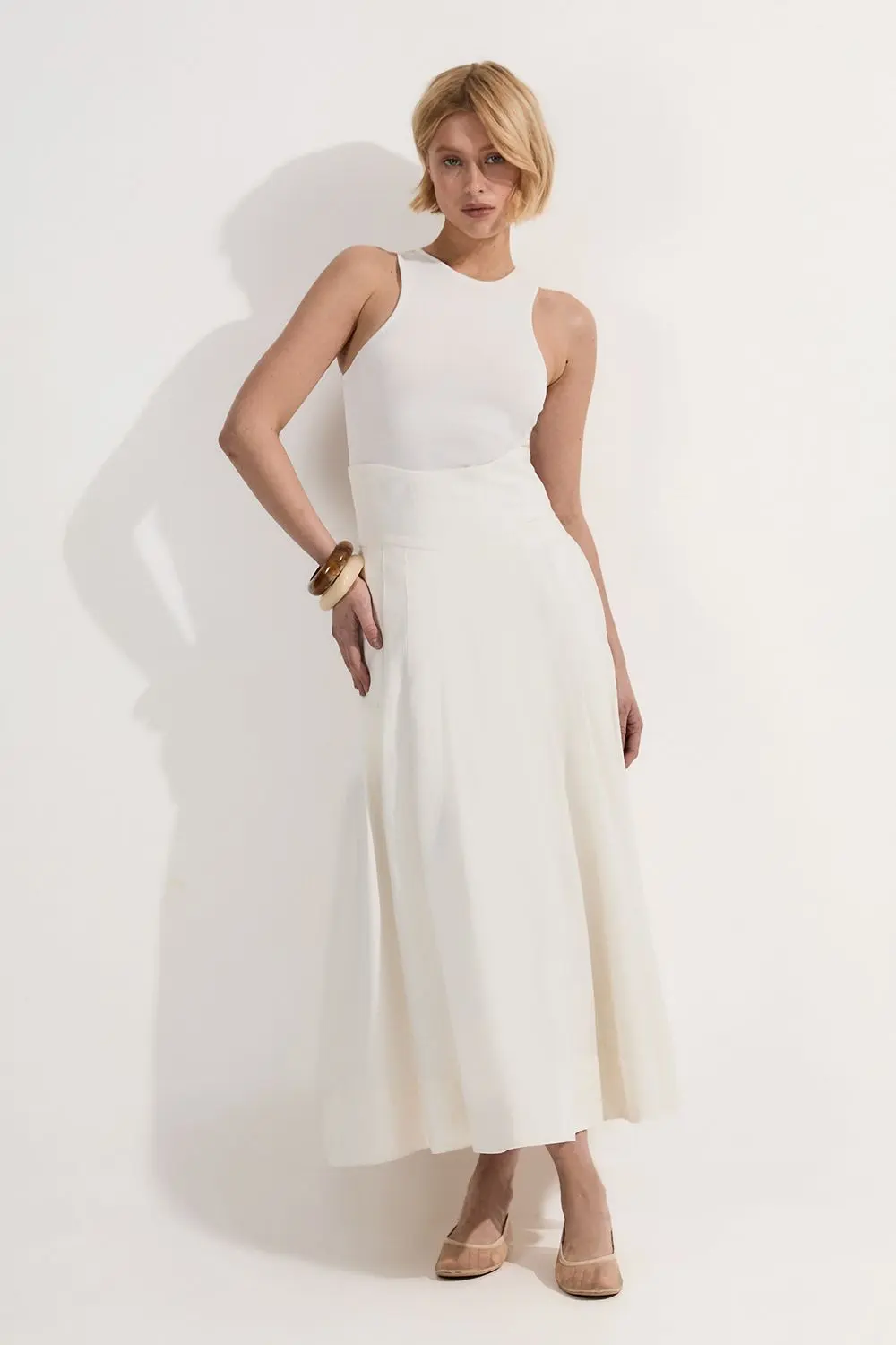 Viscose Linen Tailored Full Skirted Midaxi Skirt - Ivory