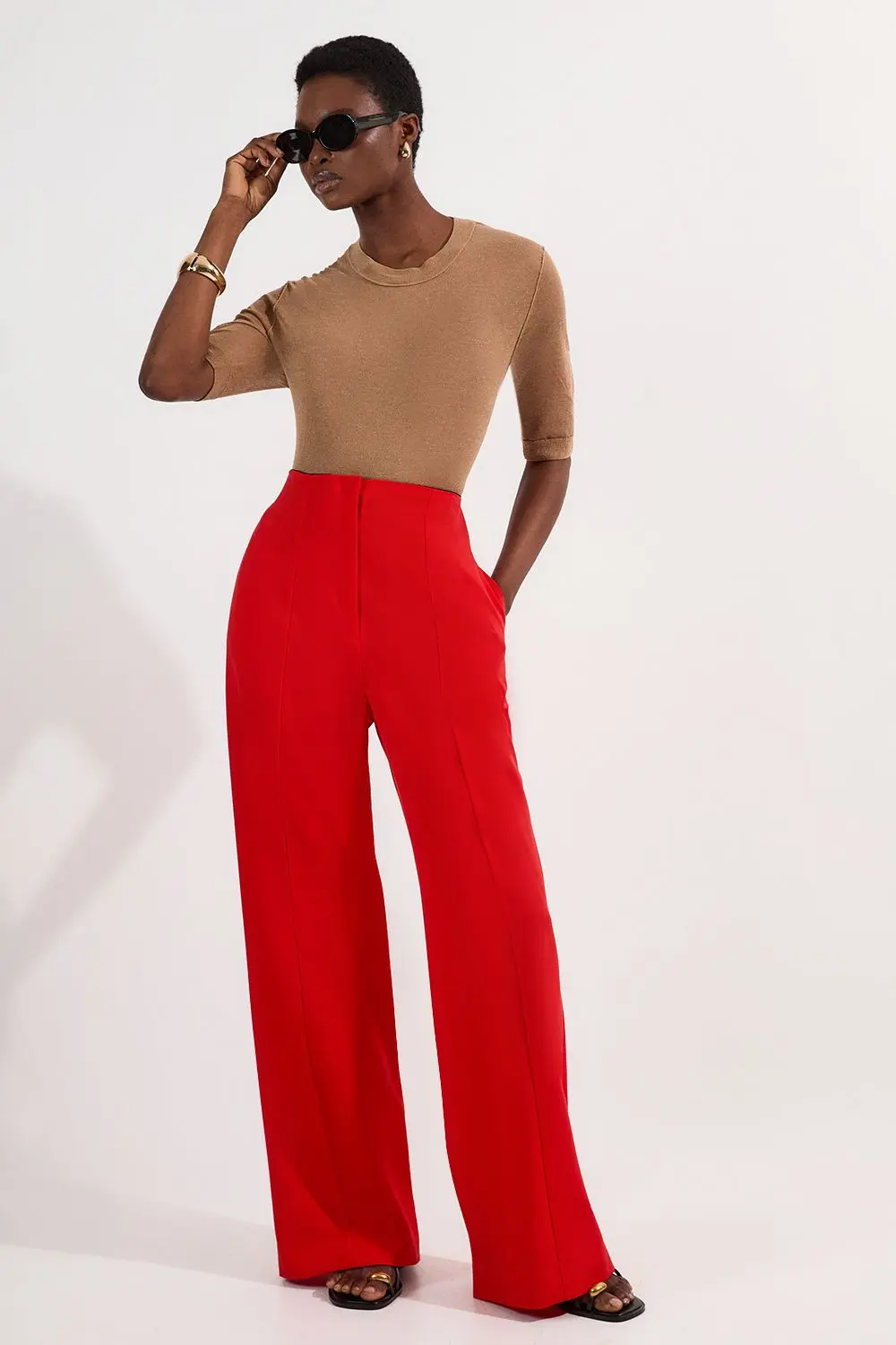 Tall Tailored High Waist Wide Leg Trousers - Red - Tall Tailored High Waist Wide Leg Trousers