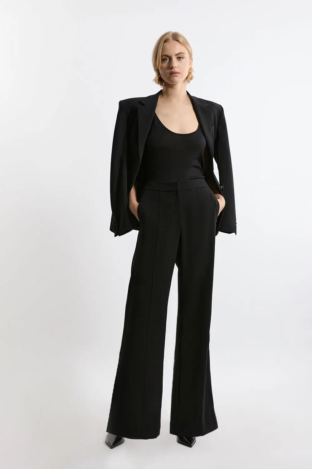 Tailored Crepe Seam Detail Straight Leg Trousers - Black
