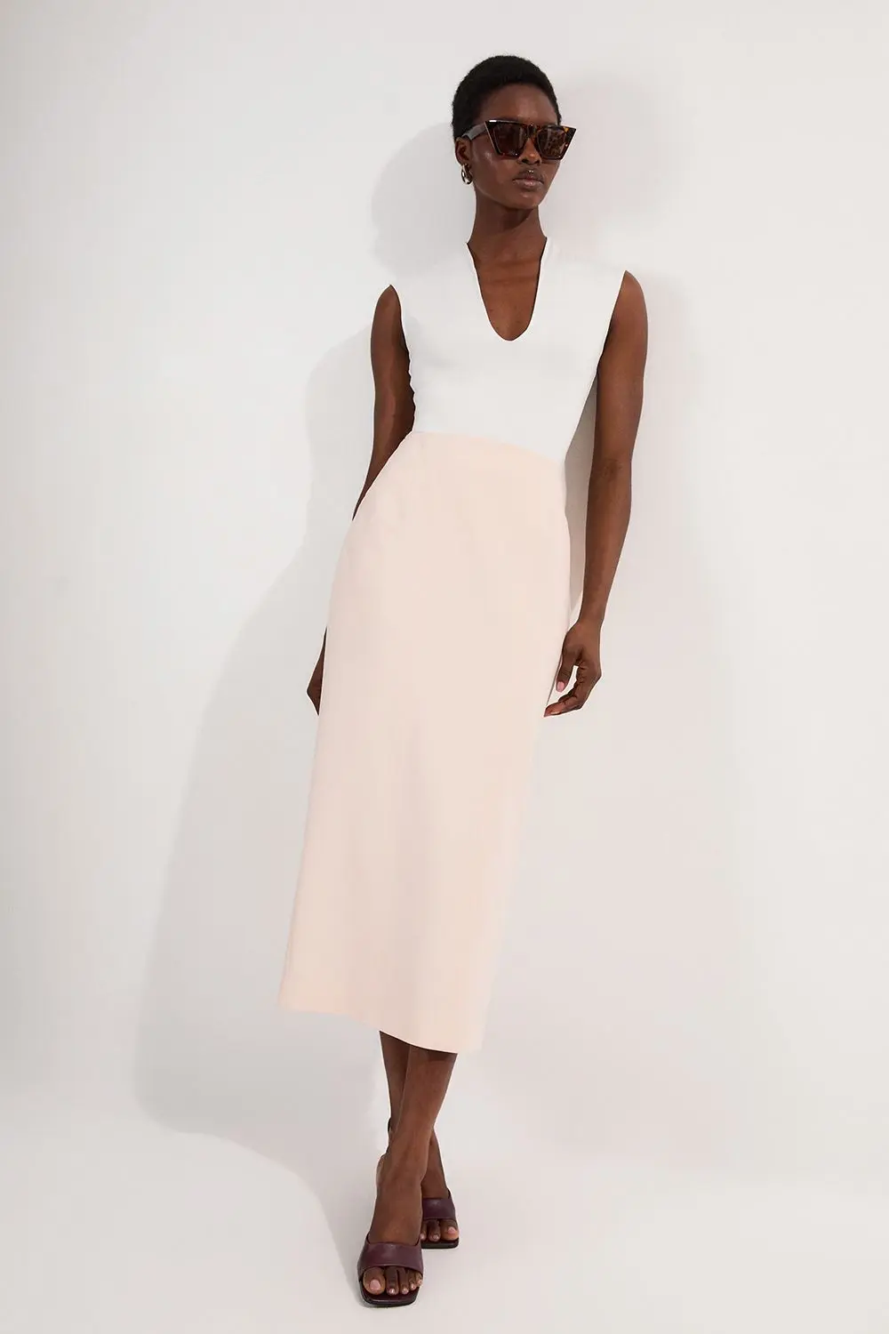 Compact Stretch Pocket Detail Tailored Midi Pencil Skirt - Ivory