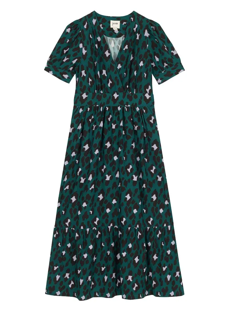 Get spotted in Albertine! This statement midaxi dress is made from our favourite fabric with Livaeco™ Viscose fibres in an all-over lilac and deep green leopard print and features a wrap-style neckline with pleats at the bust and waistband, short puff sleeves with button fastenings, a tie-back detail to nip in the waist, and a midaxi-length skirt with a deep ruffle tiered hem. Aishwarya is 5'10.5 and is wearing a UK size 10Regular fit - take your usual sizeUK Size 10 dress length: 140cmAll-over lilac and deep green leopard printWrap-style necklineUnlinedShort sleeves with button cuffsPocketsFor specific measurements of this garment, please see the Size Guide.