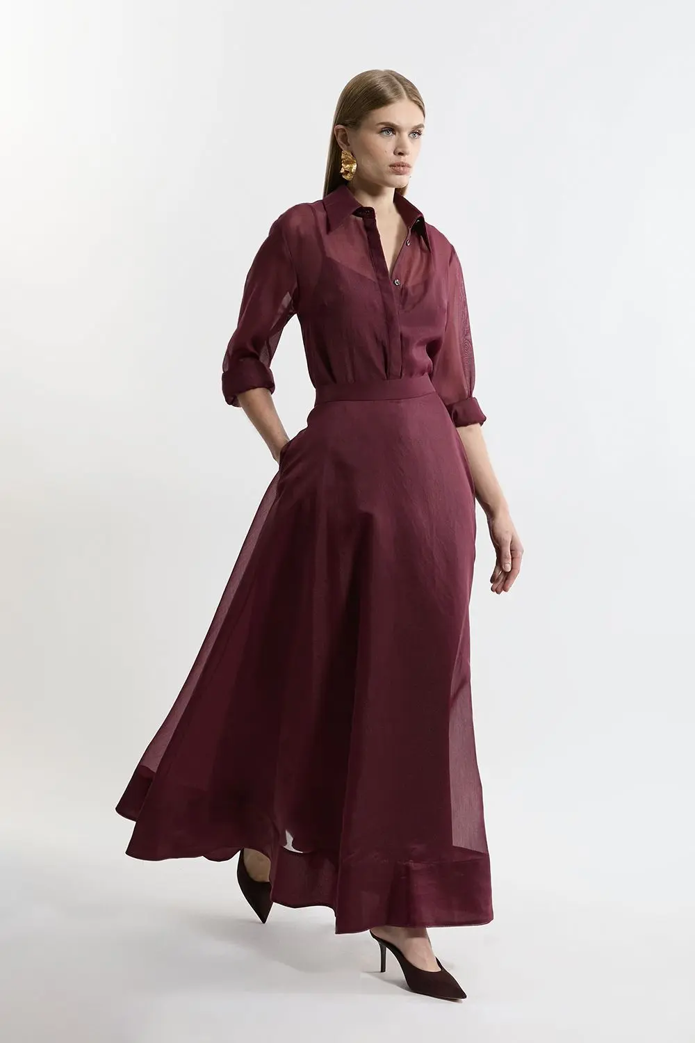 Lydia Millen Tall Organdie Woven Prom Skirt - Cabernet - Introducing By Lydia: An Elegant Invitation - a new season collection with Lydia Millen, infused with sophistication and flair for the party season. With a romantic twist, this tall fit skirt is crafted from a sheer, organdie fabric that immediately catches the eye, making it perfect for all those special occasions. This enchanting full skirt is cut to a high waist and features a maxi length that sits at the ankles and skims the hips for a flattering fit. Indulge in elevated formality and style with the matching top or blouse for an evening look with a difference. Lydia Millen Tall Organdie Woven Prom Skirt High Quality, Sheer Organdie Fabric Full Skirt for Maximum Movement Comfortable, High Waist Design Pocket Features Matching Top Sold Separately Expertly designed for those 5'10" and above, our Tall pieces are perfectly proportioned for a taller frame using longer lengths.Browse this seasons tall skirts or discover the full range of tall clothing now.