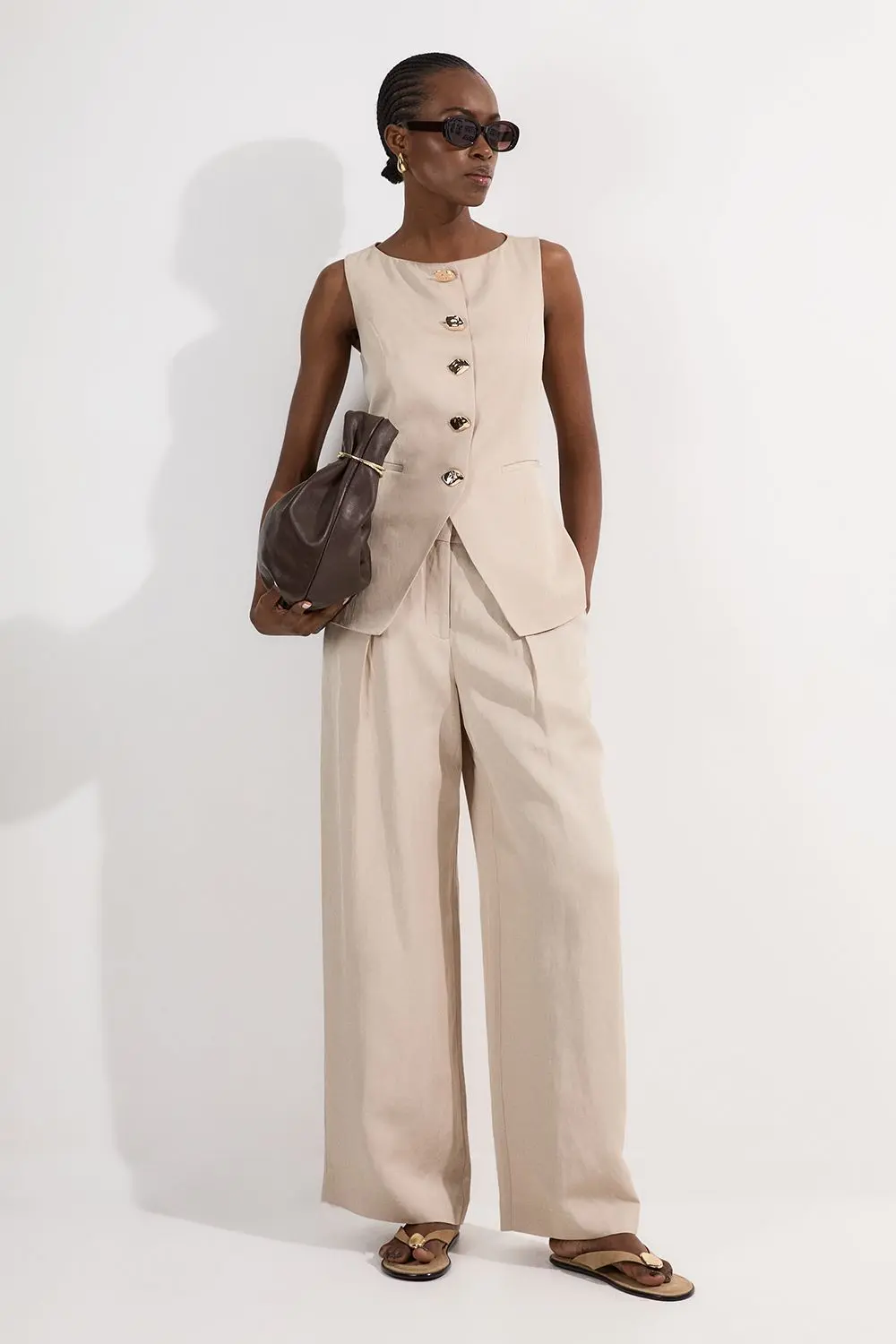 Tailored Viscose Linen Wide Leg Trouser - Champagne