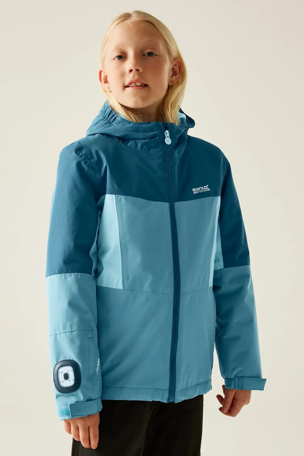 The Beamz kids' waterproof jacket from Regatta is built for adventure in any weather. Made with breathable Isotex 10000 fabric and taped seams, it provides reliable rain protection. Thermoguard insulation ensures warmth, while a Brite Light sleeve torch, reflective trims and zipped pockets enhance visibility and practicality. Ideal for school days or outdoor explorations.