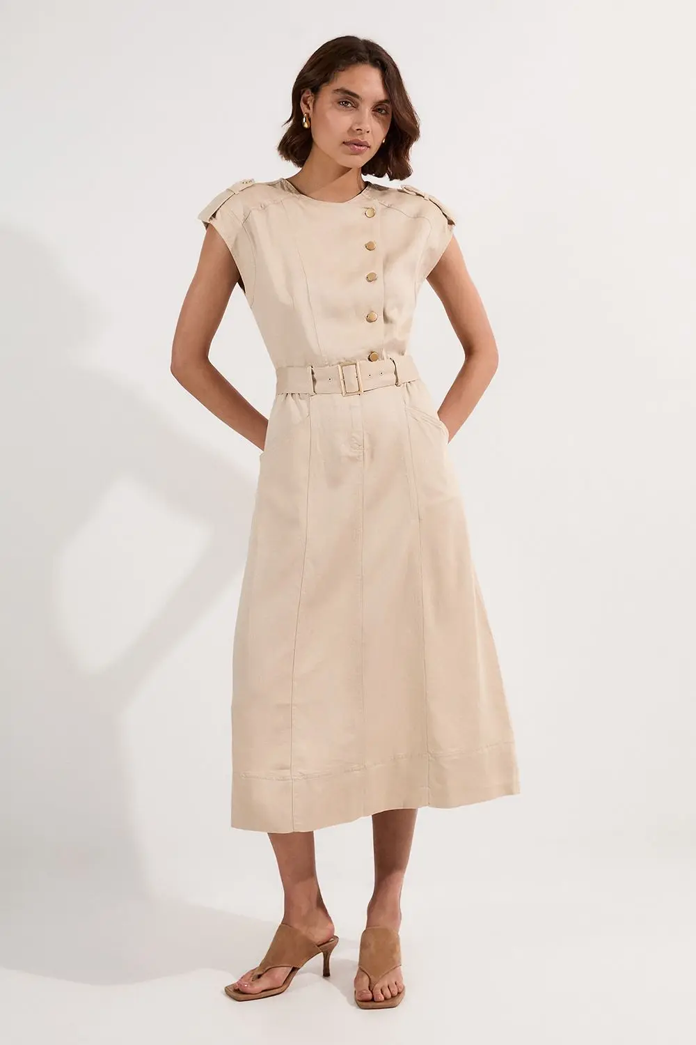 Soft Twill Relaxed Midi Dress - Brown - Soft Twill Relaxed Midi Dress