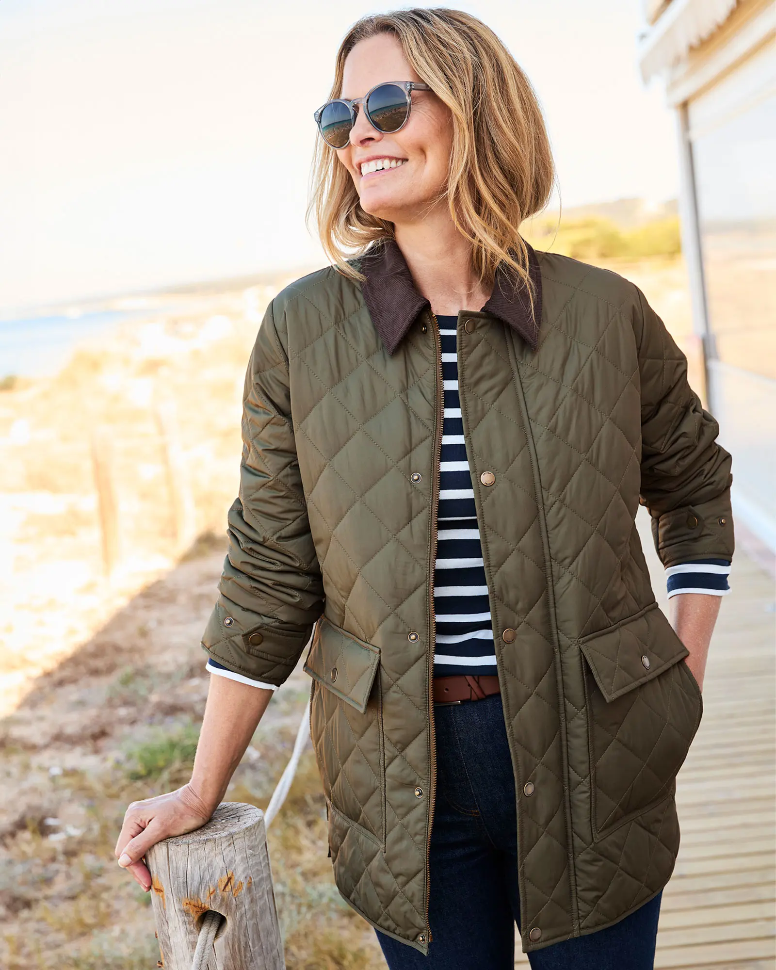 Cotton Traders Quilted Jacket in Green, 100% Polyester