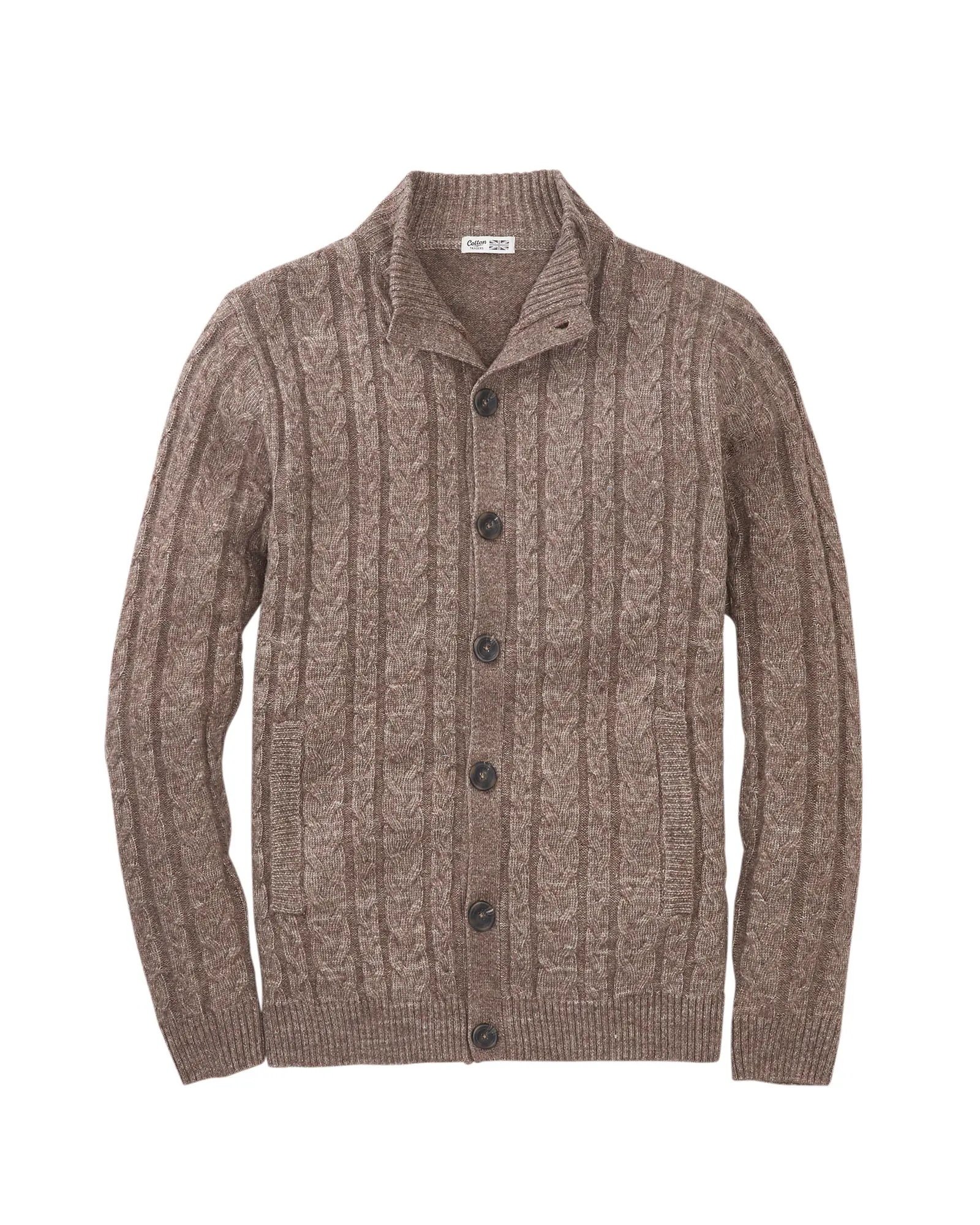 Cotton Traders Cable Knit Button Through Cardigan in Brown, Polyamide/Polyester/Acrylic