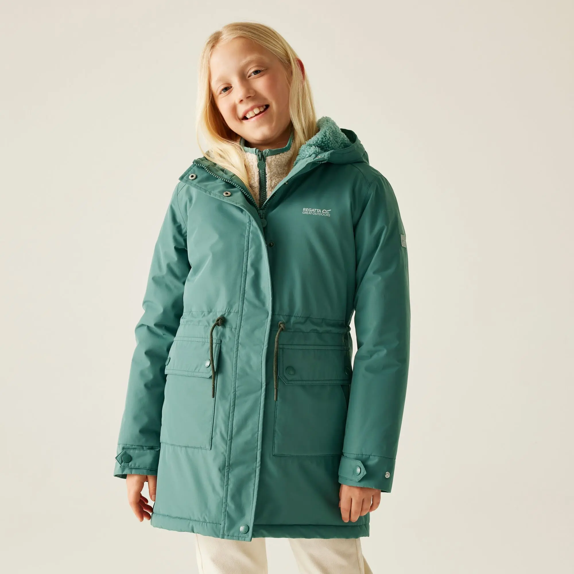 The Junior Valenta kids' hiking jacket from Regatta is warm, weatherproof and adventure-ready. Made with waterproof, breathable Isotex 10,000 fabric, it features Warmloft insulation, a sherpa-lined hood and reflective details. Patch pockets and adjustable cuffs ensure a snug fit for all-weather comfort.