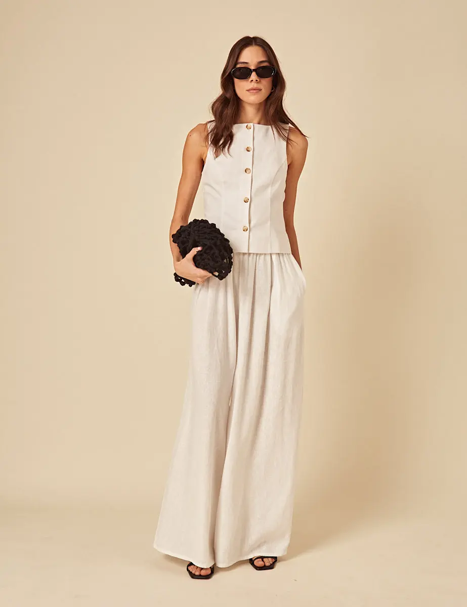 White Linen-Blend Wide Leg Jerrow Trousers