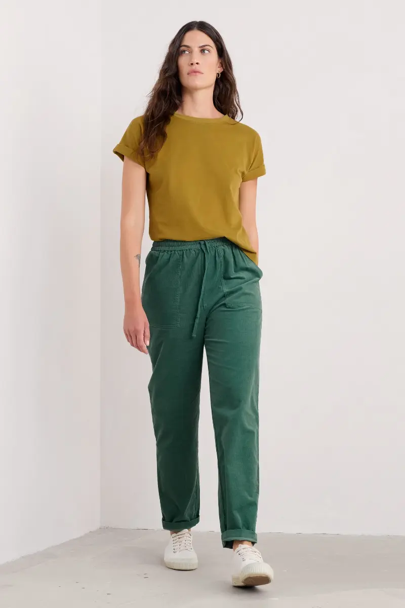 A soft cotton needlecord trouser with tapered legs and elastic waistband for extra comfort. The perfect blend of comfort and style.