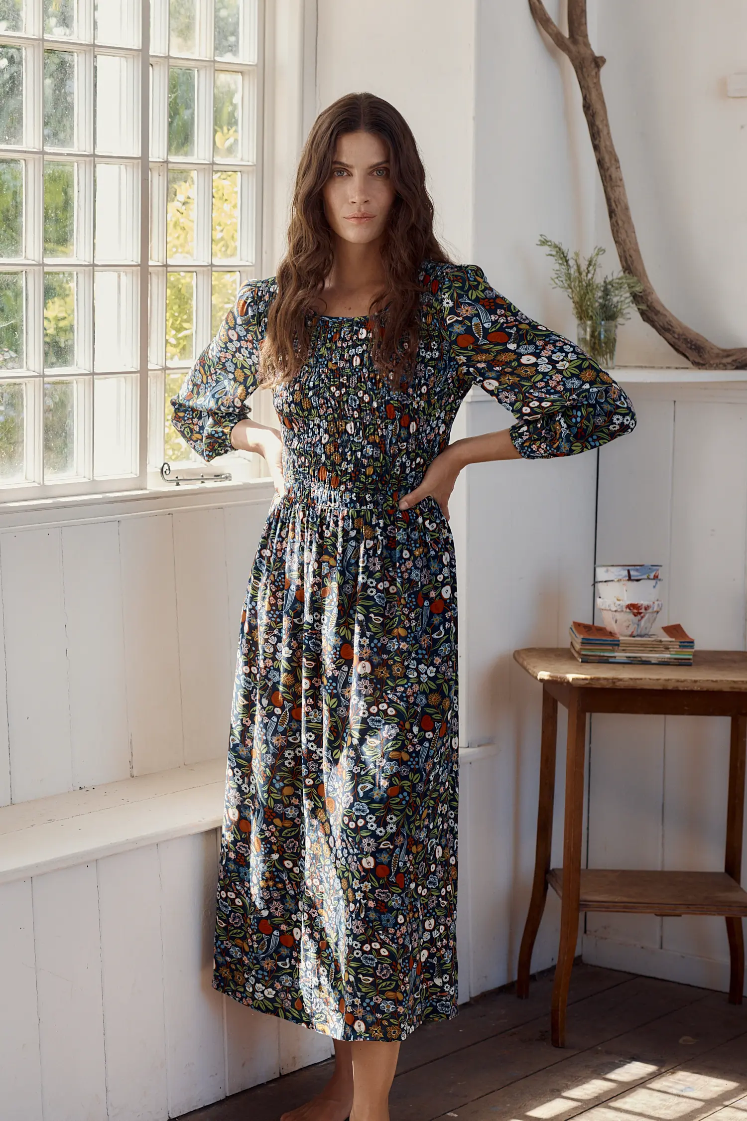 A smocked, long sleeve dress for everything from morning walks to evening dinners.