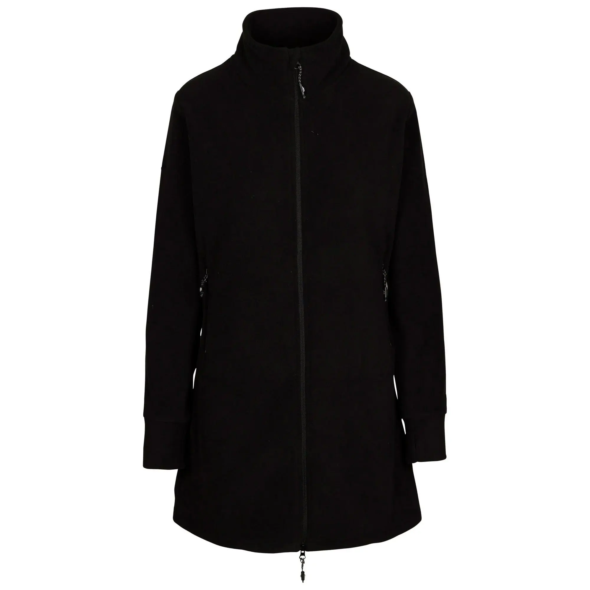 100% Polyester. Fabric: Brushed, Fleece, Soft Touch. Design: Plain. Fabric Technology: Anti-Pilling, Durable. Cuff: Double Layer. Sleeve-Type: Long-Sleeved. Neckline: Standing Collar. Length: Long. Pockets: 2 Side Pockets, Zip. Fastening: Full Zip. XS: 32 in. S: 34 in. M: 36 in. L: 38 in. XL: 40 in. XXL: 42 in.