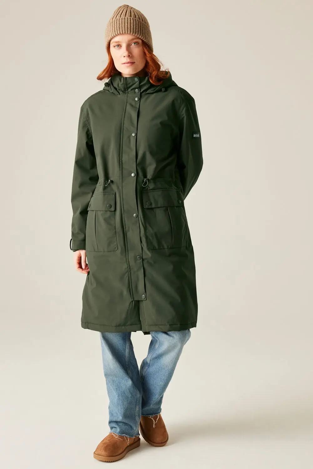 Regatta Women's Yannta Hooded Waterproof Longline Insulated Jacket in Green