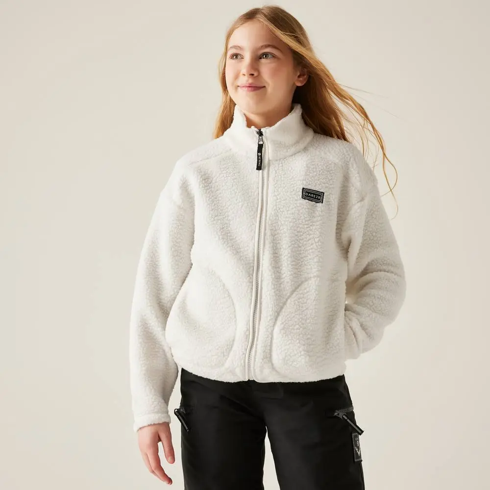 The Zesty II kids fleece from Dare 2b is made from fluffy high-pile printed fleece for soft warmth. Complete with handwarmer pockets and stretch binding for comfort on chilly adventures.