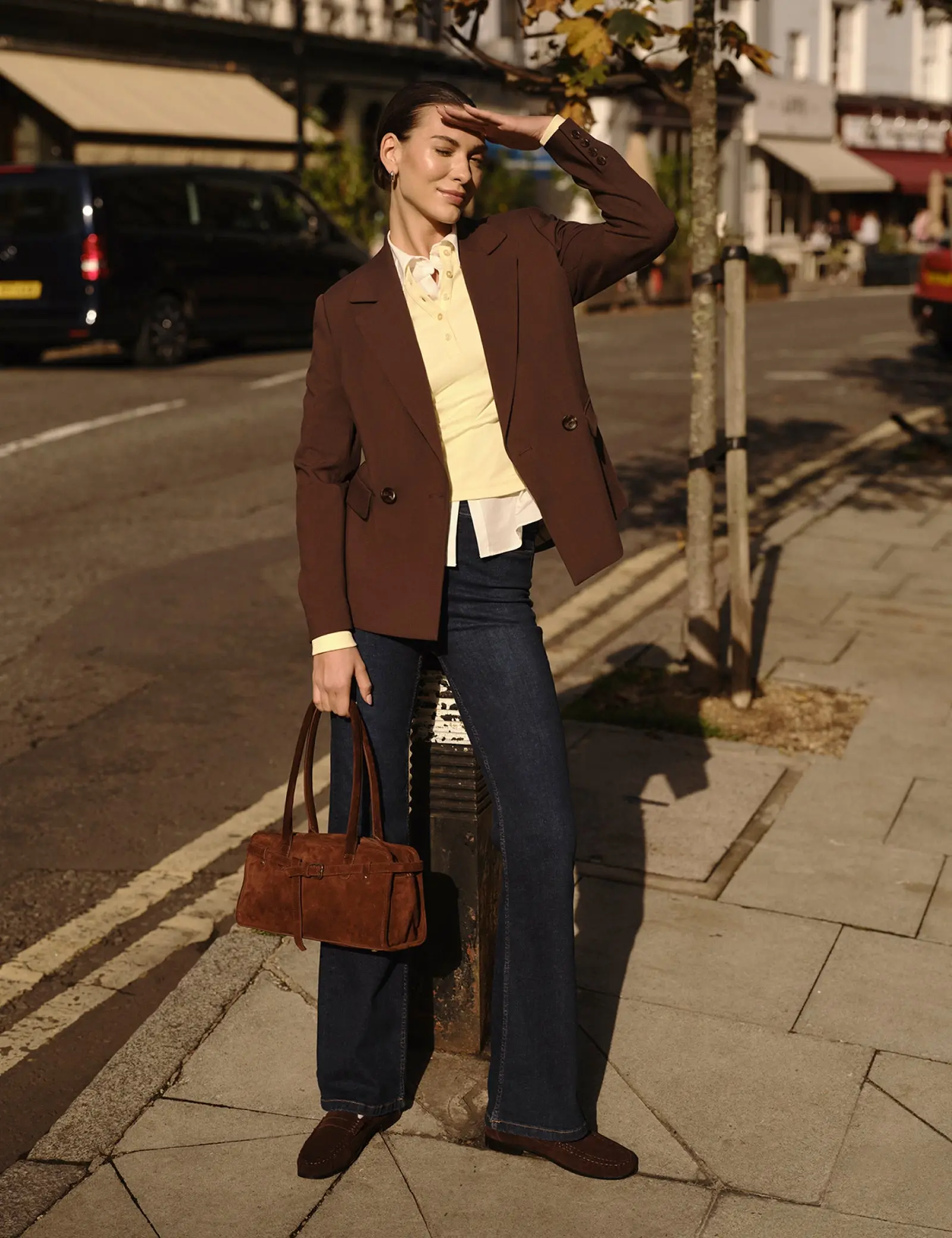 High-waisted​ Lightly flared​ Classic five pocket style​ Concealed zip fastening with button Regular inside leg length: 79cm Short inside leg length: 74cm Long inside leg length: 84cm Size tip: we recommend your usual size