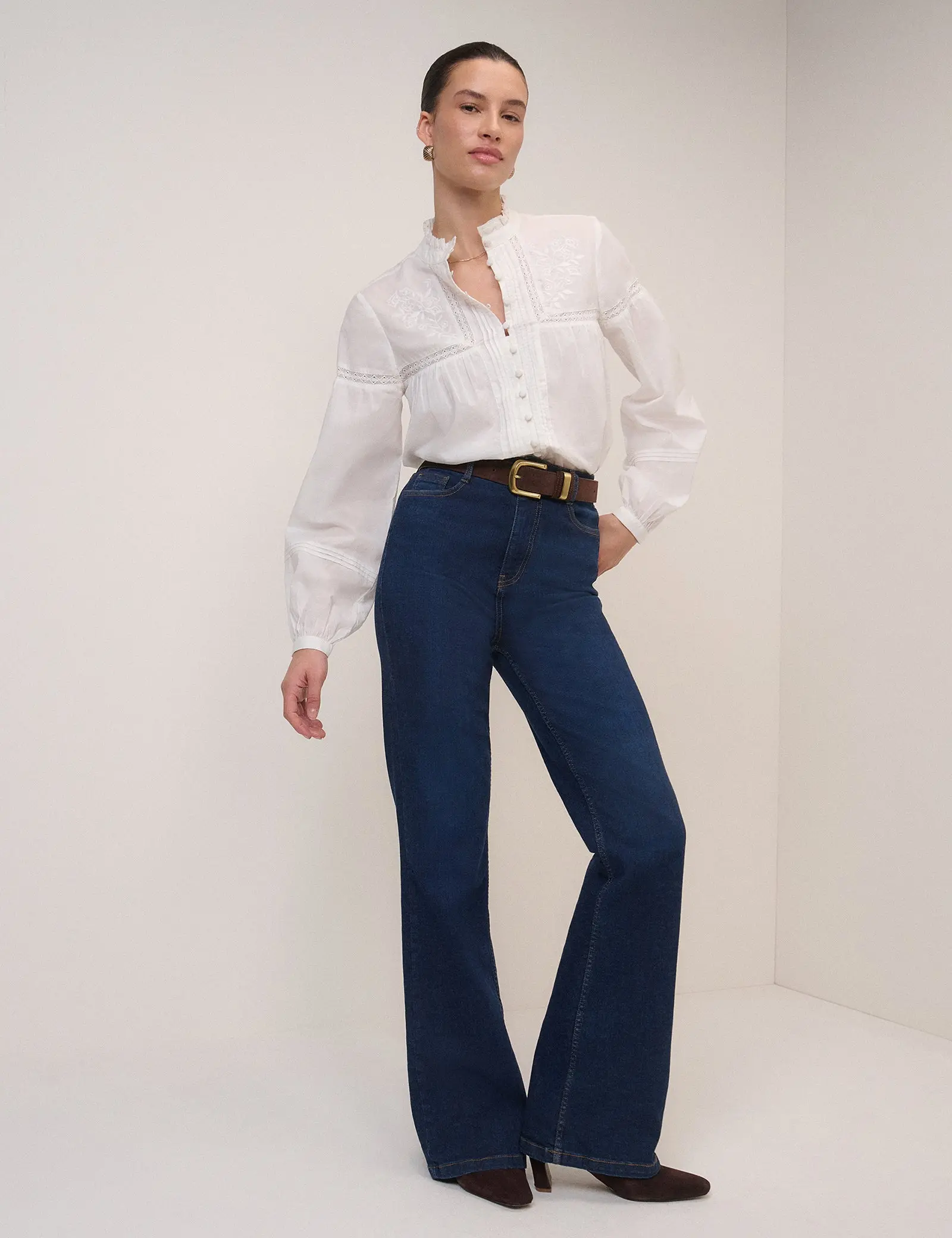 High-waisted Lightly flared Classic five pocket style Concealed zip fastening with button Regular inside leg length: 79cm Short inside leg length: 74cm Long inside leg length: 84cm Size tip: we recommend your usual size