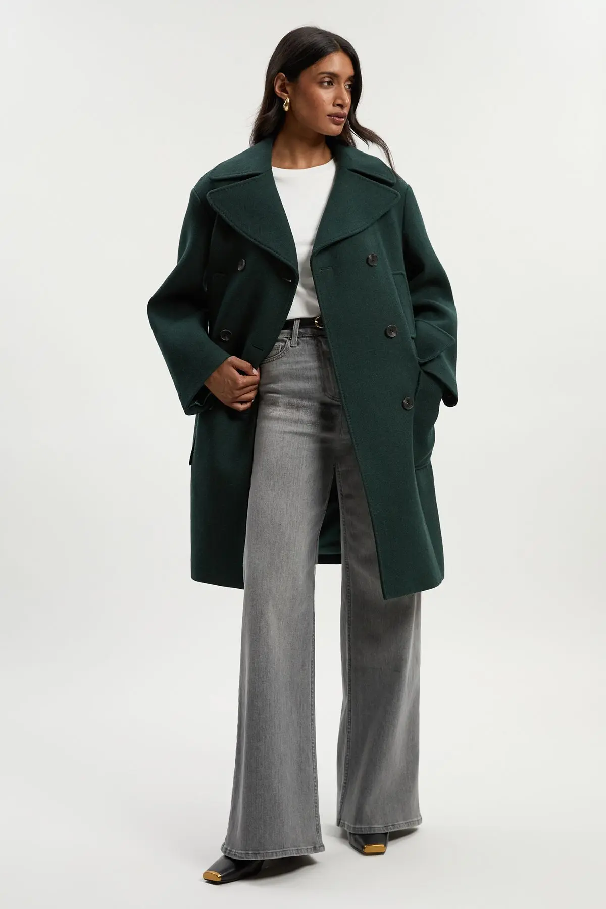Wool Patch Pocket Tailored Midi Coat - Green - Wool Patch Pocket Tailored Midi Coat
