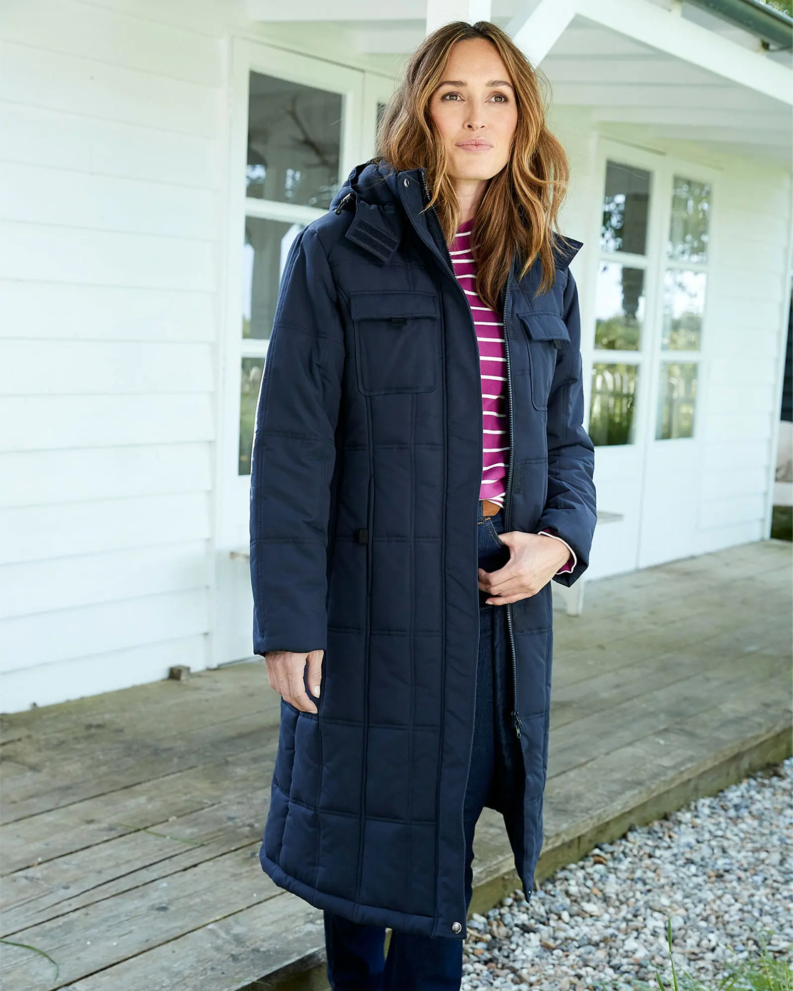 Cotton Traders Women's Long Padded Hooded Coat in Navy, 100% Polyester