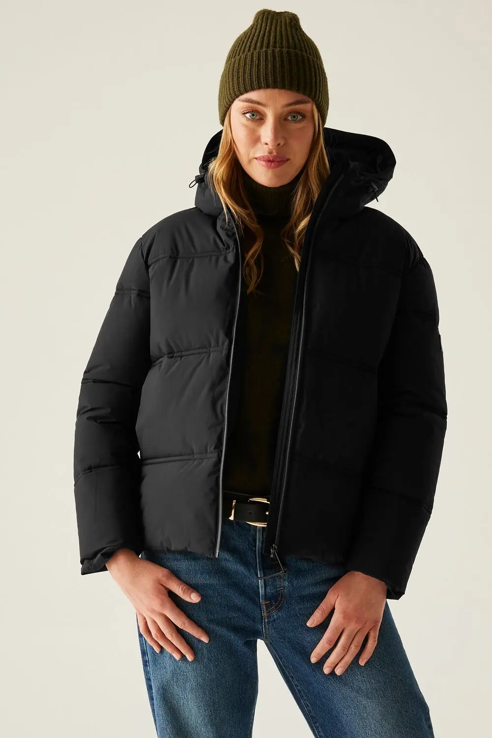 Regatta Women's Roxienne Hooded Water-Repellent Insulating Baffled Jacket in Jet Black