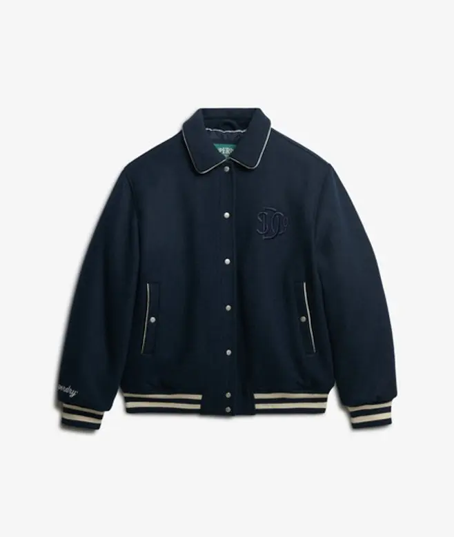 Superdry Women's Country Club Wool Bomber Jacket Blue / Blueberry Navy -