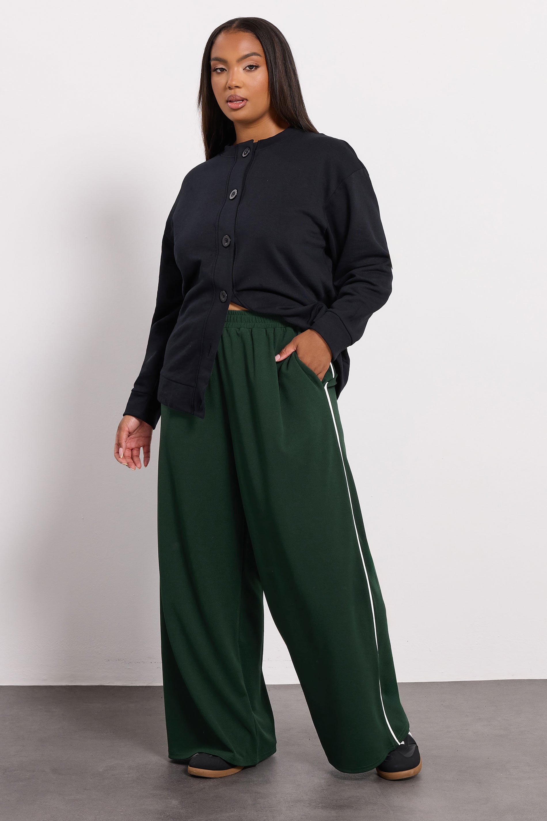 Yours Plus Size Forest Green Side Stripe Wide Leg Trousers Size 16